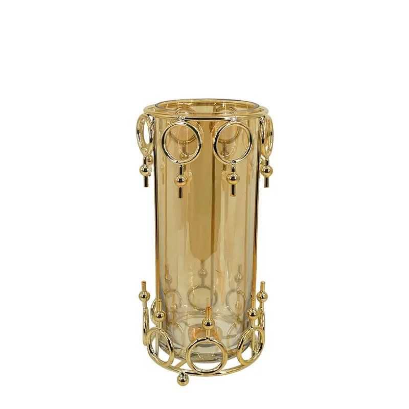МЕТАЛЕН СВЕЩНИК, ЗЛАТЕН/МЕДЕН, ЦИЛИНДЪР, КРЪГЪЛ, ГОЛЯМ, СЪС СТЪКЛО - Φ12x27см, 12/КУТИЯ