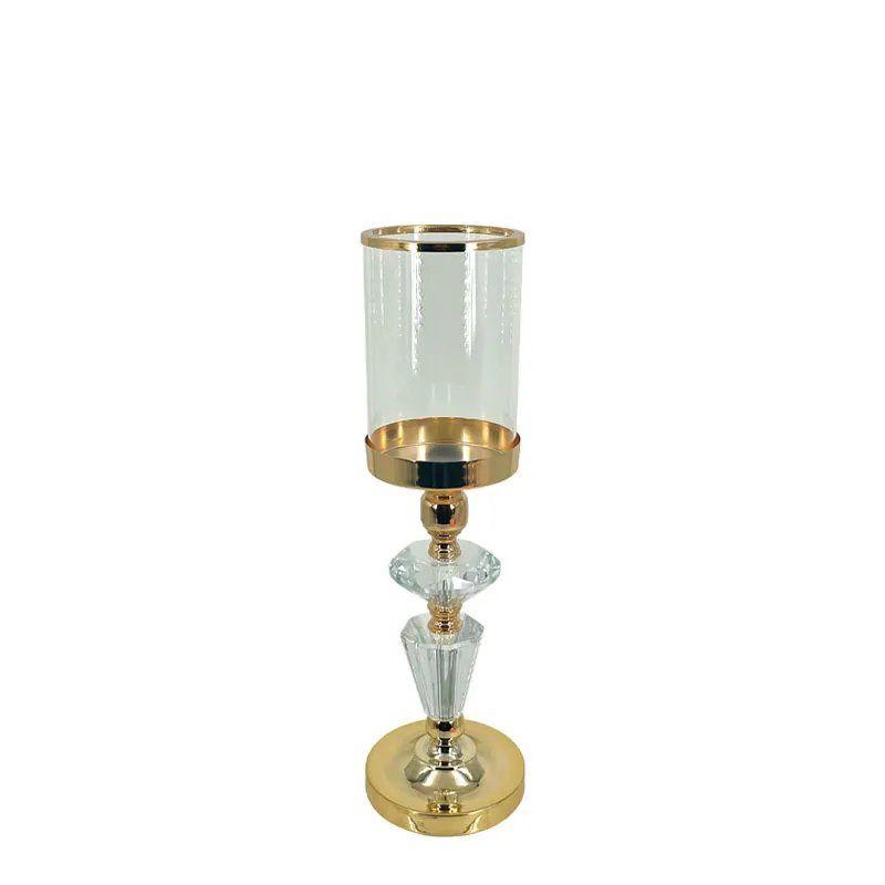 МЕТАЛЕН СВЕЩНИК, ЗЛАТИСТ/БЯЛ, КЛАСИЧЕСКИ, С КРИСТАЛИ И СТЪКЛО, МАЛЪК - Φ12x40см, 12/КУТИЯ