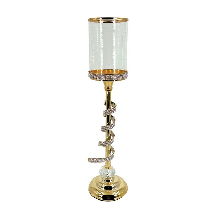 МЕТАЛЕН СВЕЩНИК, ЗЛАТИСТ/БЯЛ, С ЕДИНИЧНА ПАНДЕЛА С КРИСТАЛ, РАИРАНИ И СТЪКЛО, ГОЛЯМ - Φ12x50см 12/КУТИЯ