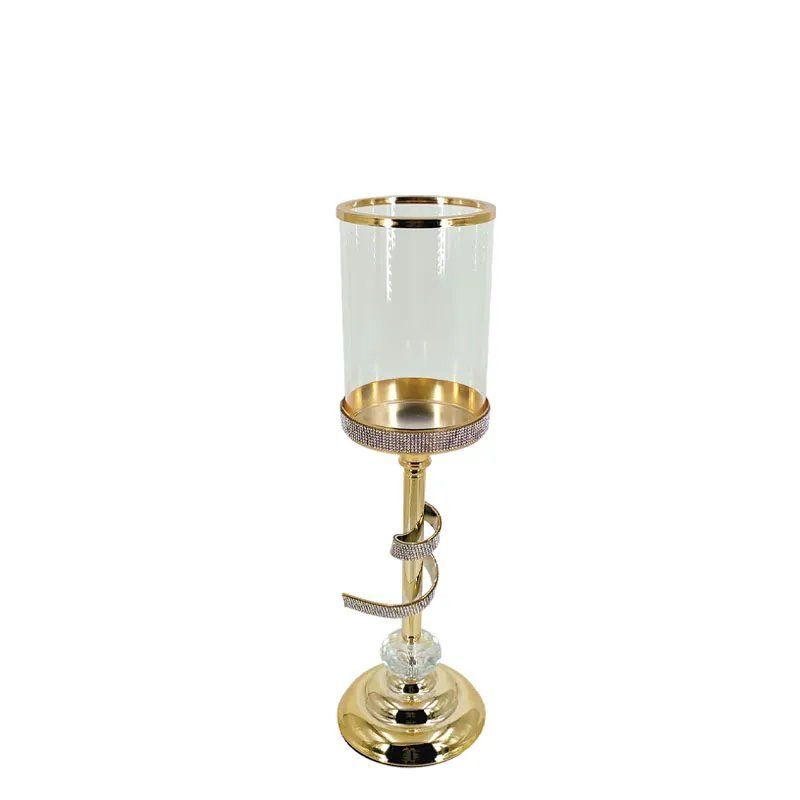 МЕТАЛЕН СВЕЩНИК, ЗЛАТИСТ/БЯЛ, С ЕДИНСТВЕНА ПАНДЕЛА С КРИСТАЛ, РАИИ И СТЪКЛО, МАЛЪК - Φ12x40см 12/КУТИЯ