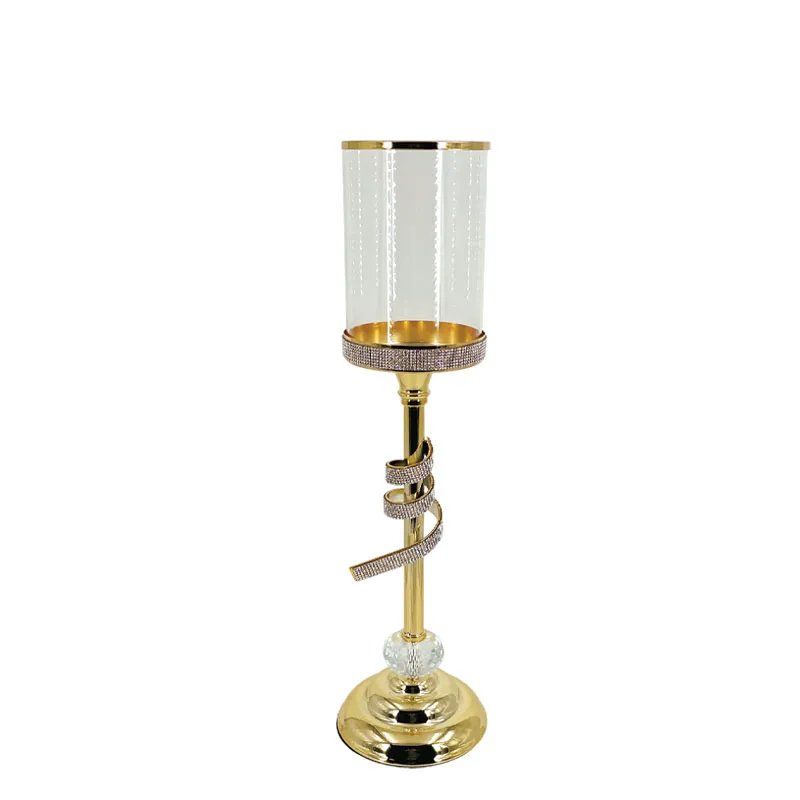 МЕТАЛЕН СВЕЩНИК, ЗЛАТИСТ/БЯЛ, С ЕДНА ПАНДЕЛА С КРИСТАЛ, РАИРАНИ И СТЪКЛО, СРЕДЕН - Φ12x45см 12/КУТИЯ