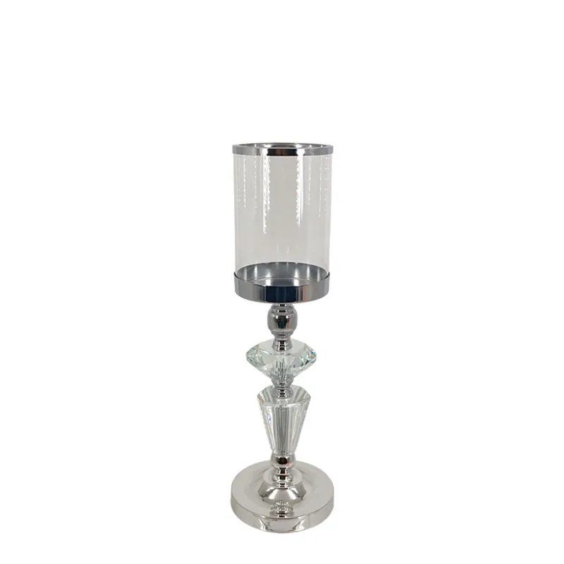 МЕТАЛЕН СВЕЩНИК, СРЕБЪРЕН/БЯЛ, КЛАСИЧЕСКИ, С КРИСТАЛИ И СТЪКЛО, МАЛЪК - Φ12x40см, 12/КУТИЯ