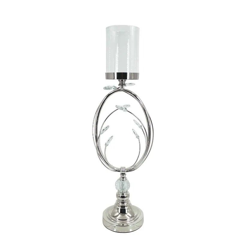 МЕТАЛЕН СВЕЩНИК, СРЕБЪРЕН/БЯЛ, СЪС СТЪКЛЕНИ КРИСТАЛИ, ГОЛЯМ - Φ18x49.5 см, 6 бр./КУТИЯ