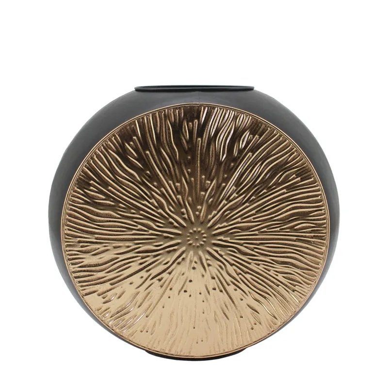 МЕТАЛНА ВАЗА ЗЛАТИСТО-ЧЕРНА КРЪГЛА/ МАЛКА - 53x15.5x49.5см 1/KIB
