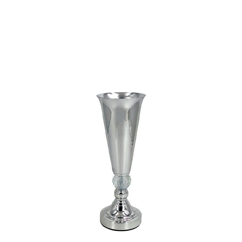 МЕТАЛНА ВАЗА СРЕБЪРНА/БЯЛА КЛАСИЧЕСКА С КРИСТАЛ МАЛКА - Φ12x33см 24/КУТИЯ