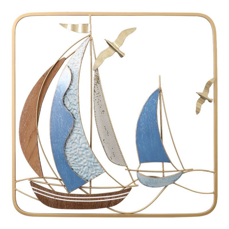 МЕТАЛНА СТЕННА ДЕКОРАТИВНА КВАДРАТНА ДЕКОРАЦИЯ С 2 ЛОДКИ И ПТИЦИ - 50.2x50.2x3.2 см 4/КУТИЯ