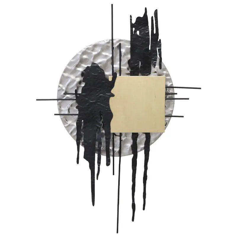 МЕТАЛНА СТЕННА ДЕКОРАЦИЯ СРЕБЪРНИ/ЗЛАТНИ/ЧЕРНИ ЧЕТКИ АБСТРАКТ - 71.8x100.3x6.4см 4/KIB