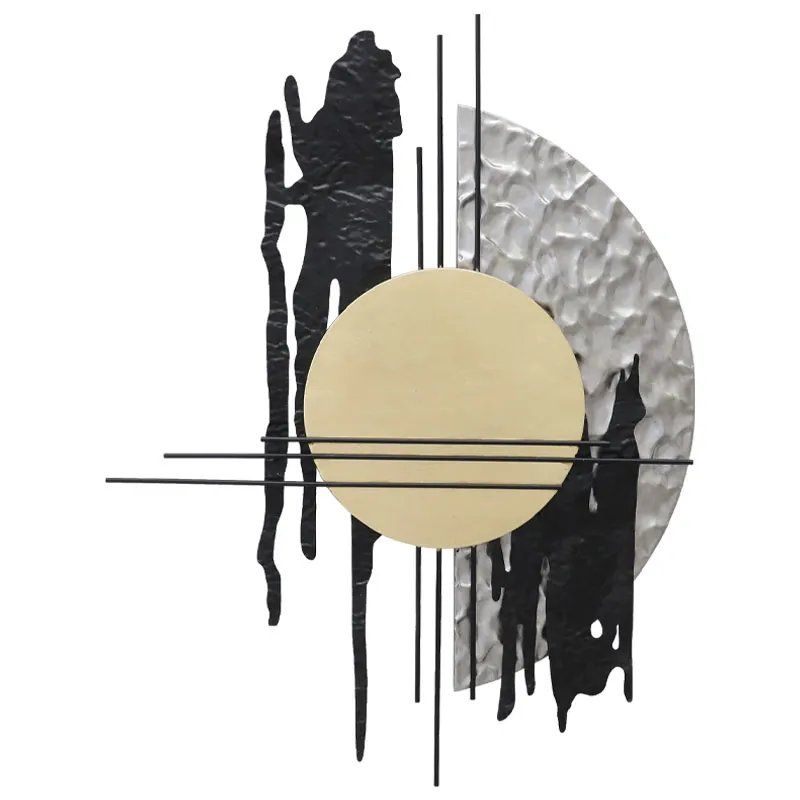 МЕТАЛНА СТЕННА ДЕКОРАЦИЯ СРЕБЪРНИ/ЗЛАТНИ/ЧЕРНИ ЧЕТКИ АБСТРАКТ - 78.1x102.2x5.1см 4/KIB