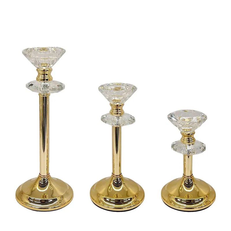 МЕТАЛНИ СВЕЩНИЦИ ЗЛАТИСТИ/БЕЛИ КОМПЛЕКТ/3 КЛАСИЧЕСКИ С КРИСТАЛИ Р:Φ10x17, М:Φ10x21, Д:Φ10x27см 12/КУТИЯ