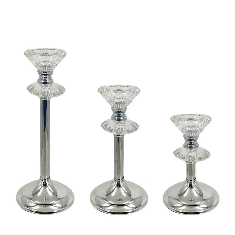 МЕТАЛНИ СВЕЩНИЦИ СРЕБЪРНИ/БЕЛИ КОМПЛЕКТ/3 КЛАСИЧЕСКИ С КРИСТАЛИ - Р: Φ10x17, М: Φ10x21, Д: Φ10x27см 12/КУТИЯ