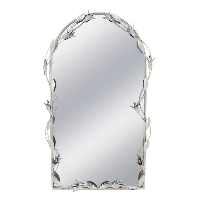 Метално стенно огледало със сребърни листа и клони - 66x8x108.5 см 1/kib
