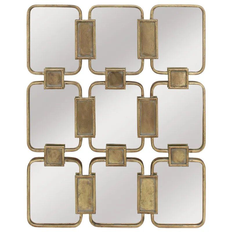 Метално стенно огледало, златисто, правоъгълно (композиция X9) - 73x3x91см 1/kib