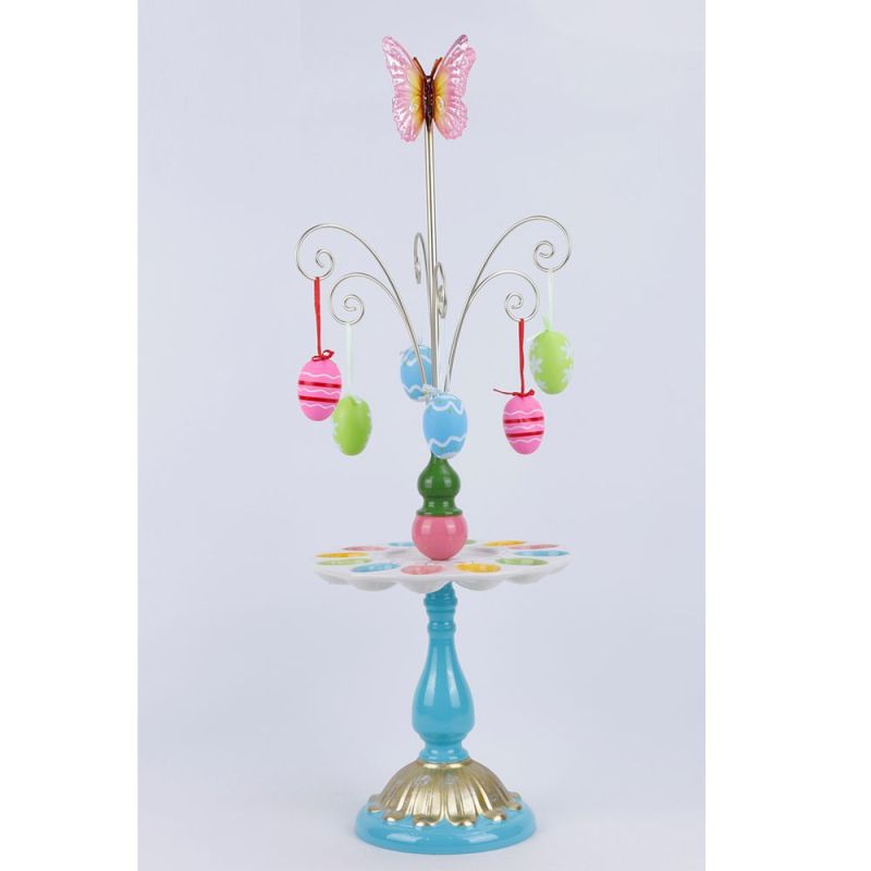 Многоцветна керамична поставка за яйца със синьо-златна основа 25,5x25,5x75,5 см