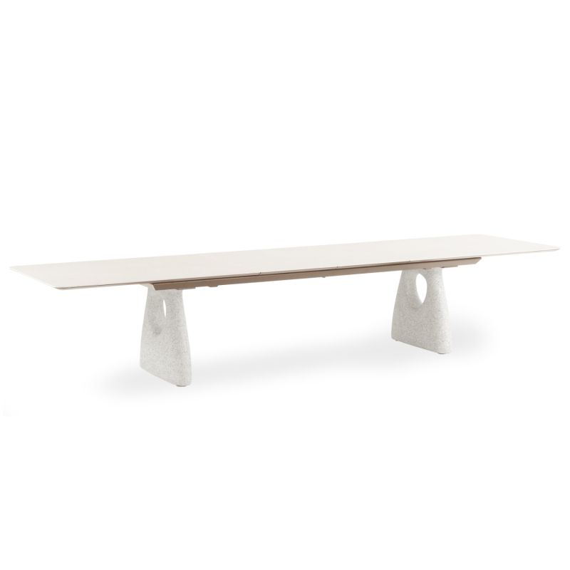 РАЗТЕГАТЕЛЕНА ТРАПЕЗАРНА МАСА GOFFEN SM6410.01 АЛУМИНИЕВ ПЛОТ ОТ СЛОНОВА КОСТ И СИНТЕРОВАН КАМЪК 280-400X100X76.5В