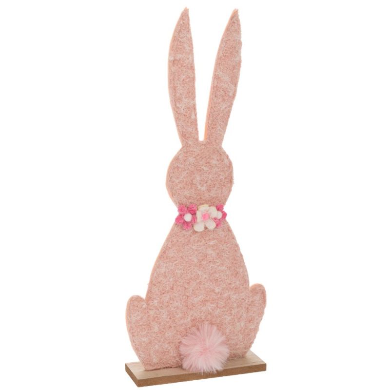 Розов филцов зайк с дървена основа 15x5x40см