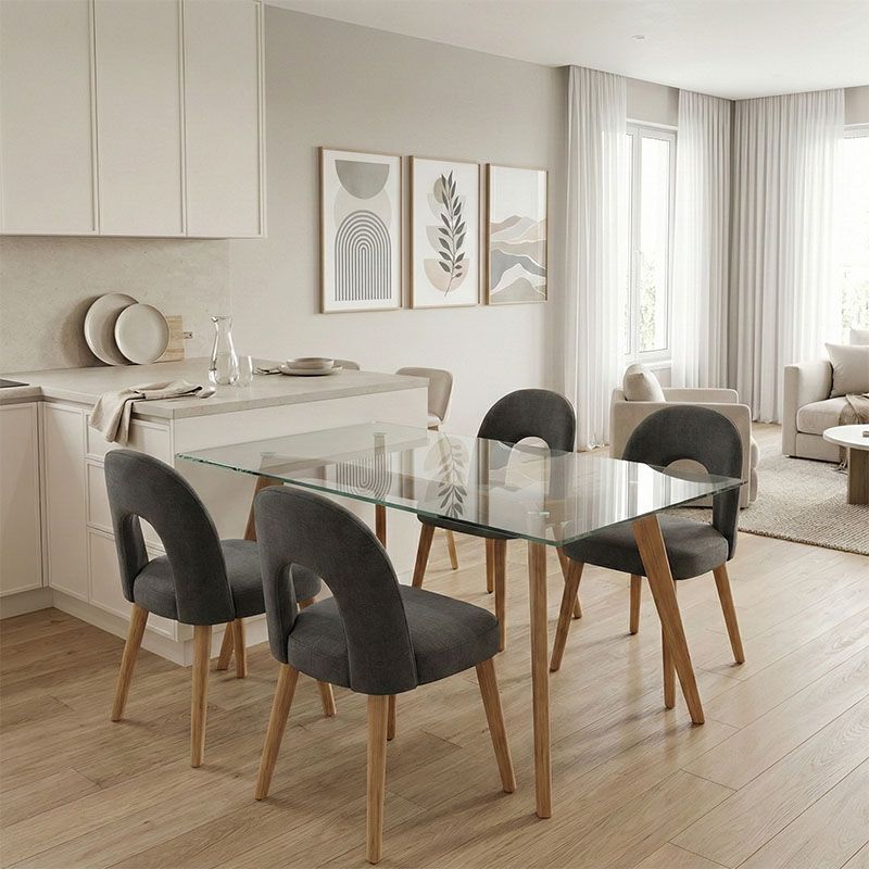 ТРАПЕЗАРИЯ С АНТРАЦИТНИ СТОЛОВЕ JONAH И СТЪКЛЕНА МАСА TITTA 120X70X75СМ, КОМПЛЕКТ ОТ 5 ЧАСТИ