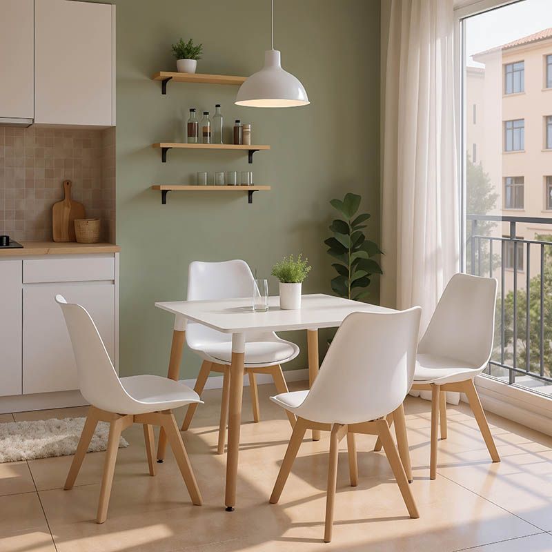 ТРАПЕЗАРИЯ С БЕЛИ СТОЛОВЕ GASTON И БЯЛА МАСА NATALI 80X80X76 СМ, КОМПЛЕКТ ОТ 5 ЧАСТИ