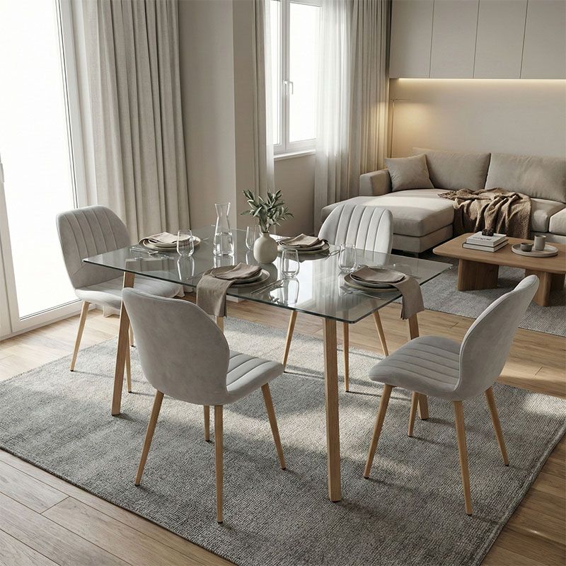 ТРАПЕЗАРИЯ С ГЕЛ СТОЛОВЕ В СИВО И СТЪКЛЕНА МАСА TITTA 120X70X75СМ КОМПЛЕКТ ОТ 5 ЧАСТИ