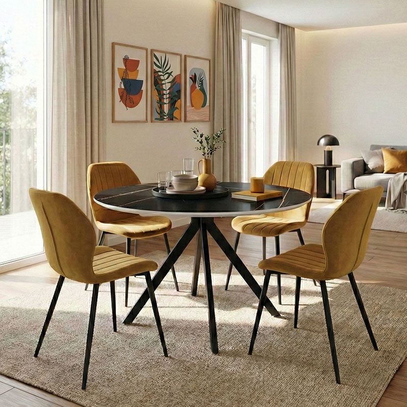 ТРАПЕЗАРИЯ С ЖЪЛТИ СТОЛОВЕ JELOUR И ЧЕРНА ОРБИТАЛНА МАСА 120X76, КОМПЛЕКТ ОТ 5 ЧАСТИ