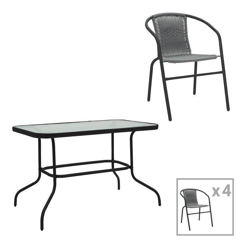ТРАПЕЗАРНА МАСА VALOR-OBBI КОМПЛЕКТ ОТ 5 ЧАСТИ ЧАСТИ МЕТАЛ ЧЕРЕН-СТЪКЛО-СИВ 110X60X70СМ