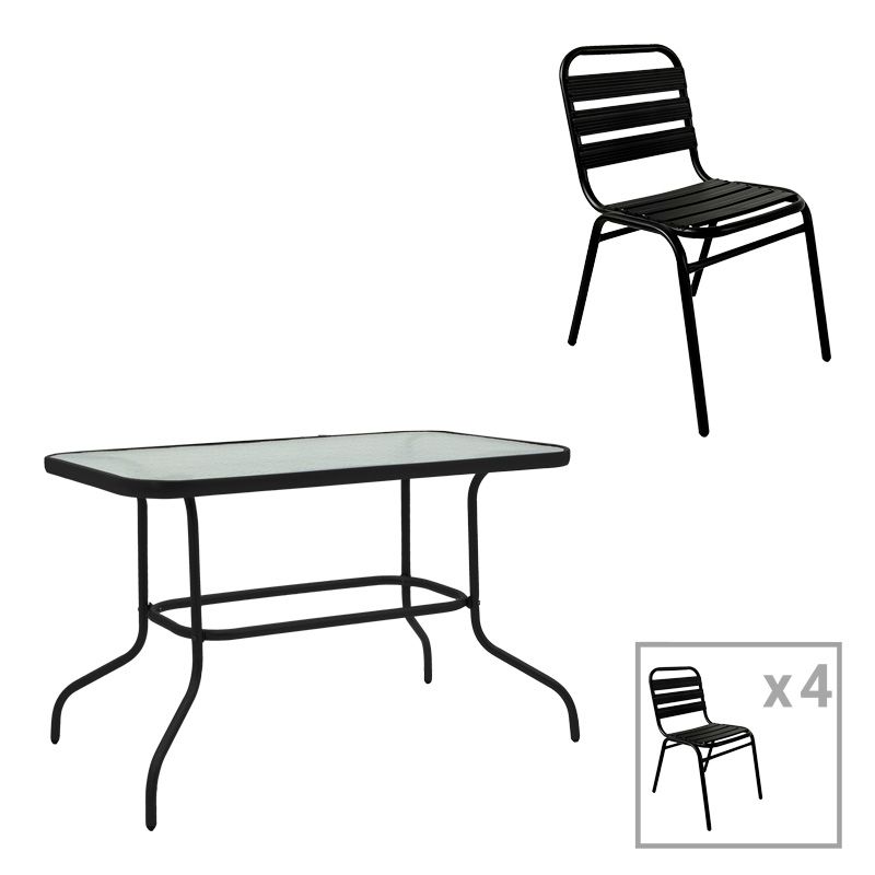 ТРАПЕЗАРНА МАСА VALOR-SUSSIE КОМПЛЕКТ ОТ 5 ЧАСТИ ЧАСТИ МЕТАЛ ЧЕРЕН-СТЪКЛО 110X60X70СМ