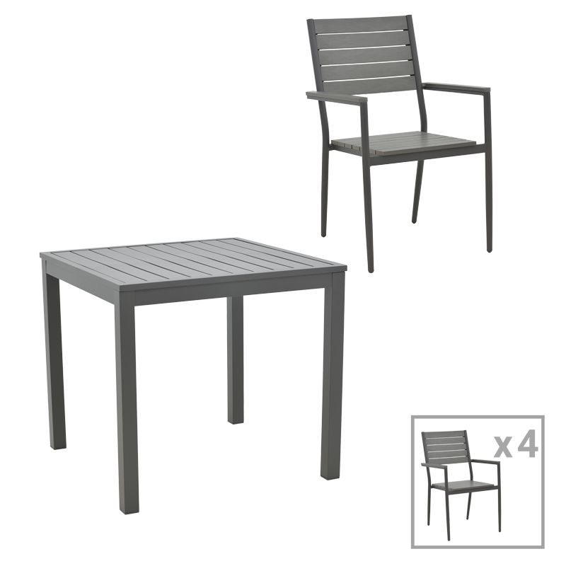 ТРАПЕЗНА МАСА UPLIFT-KLITON КОМПЛЕКТ ОТ 5 ЧАСТИ АНТРАЦИТ АЛУМИНИЙ И СИВ ШПЕРПЛАТ 80X80X74СМ
