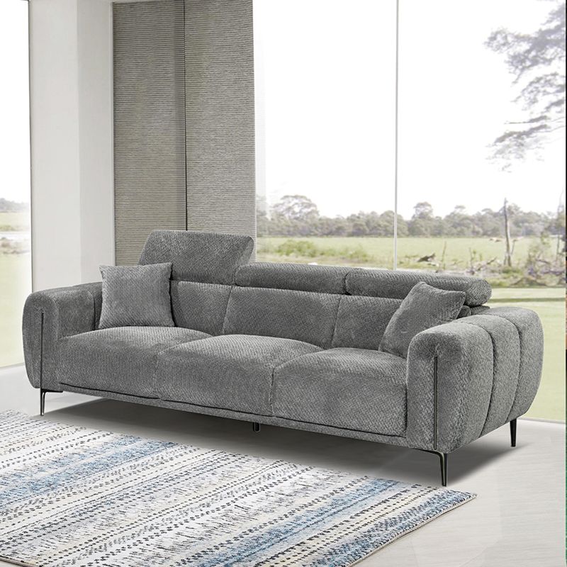 ТРИМЕСТЕН ДИВАН ЗА ХОЛ SEVILLE, ПЛАТ С ПЛЮШЕНО МЕЧЕ, ТЪМНОСИВ