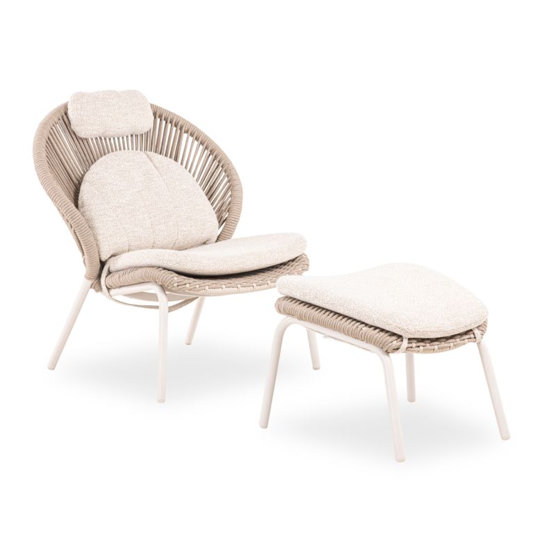 ФОТЬОЙЛ С ПОСТАВКА ЗА КРАКА RIVEN SM6395.01, АЛУМИНИЕВА-БЕЖОВА ВЪЗГЛАВНИЦА, ЦВЯТ СЛОНОВА КОСТ, 86.5X89.5X115H