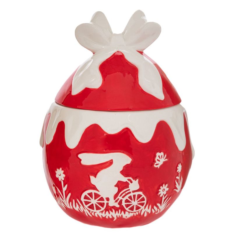 ЧЕРВЕН КЕРАМИЧЕН БУРКАН ЗА БИСКВИТКИ СЪС ЗАЙЧЕ 16,5X16,5X23 СМ