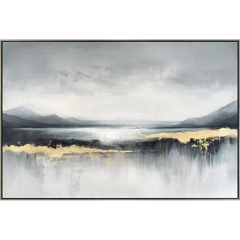 ЧЕРНО-БЯЛА/ЗЛАТНА КАРТИНА НА ПЛАТНО ЕЗЕРО И ПЛАНИНИ В РАМКА - 122.5x82.5x3.5см 6/KIB