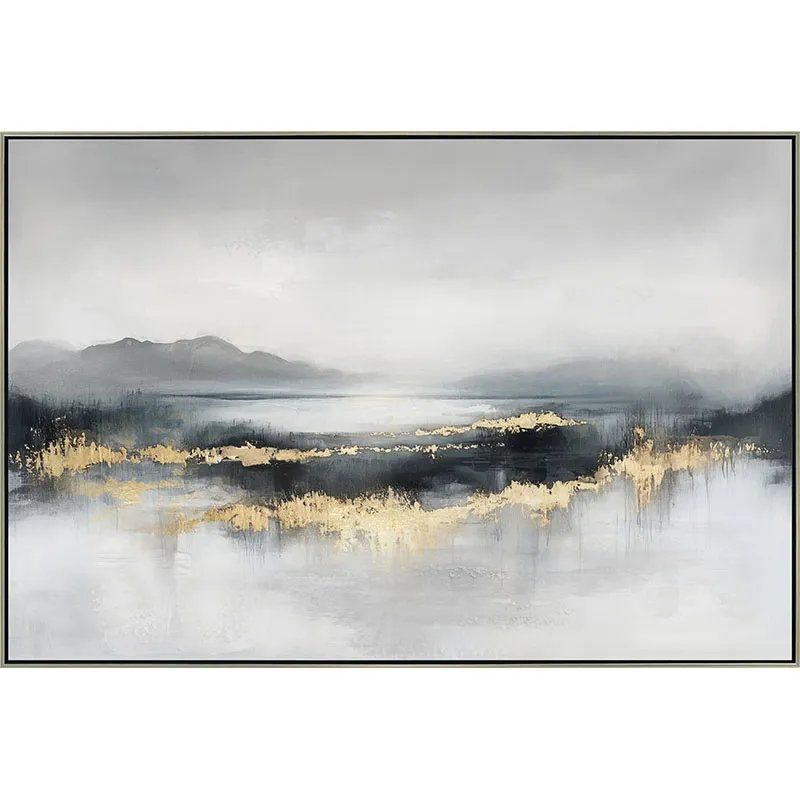 ЧЕРНО-БЯЛА/ЗЛАТНА КАРТИНА НА ПЛАТНО ЕЗЕРО И ПЛАНИНИ В РАМКА - 122.5x82.5x3.5см 6/KIB