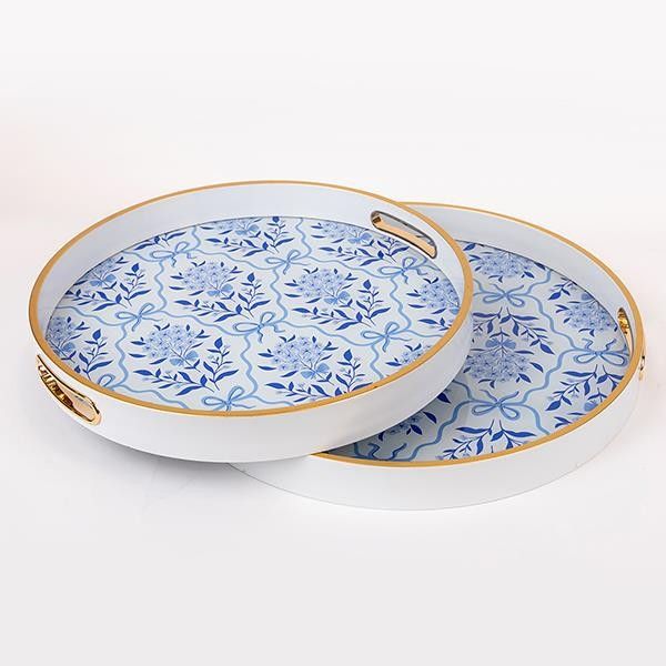 S/2 ПОДНОС PS-СТЪКЛО БЯЛО - СИНЬО 40X40X4СМ / 36X36X4СМ