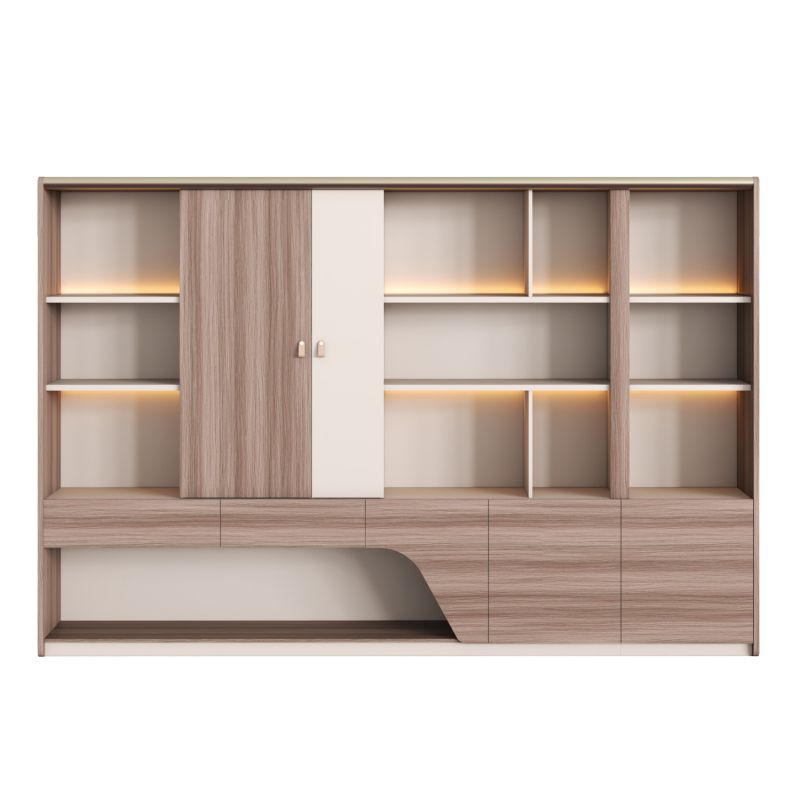 БИБЛИОТЕКА SUPERON HM2141 МЕЛАМИН В БЕЖОВО И ЕСТЕСТВЕНО ДЪРВО-LED ОСВЕТЛЕНИЕ 300X40X200ВСМ.