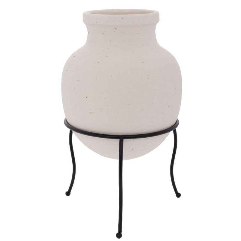 БЯЛА КЕРАМИЧНА ВАЗА НА ЧЕРЕН ЖЕЛЕЗНИ КРАКА 20X20X28 СМ