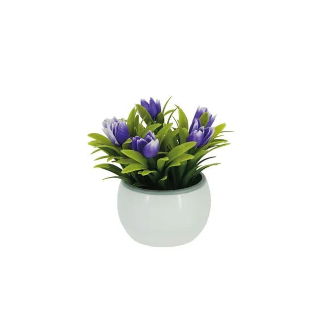 Бяла саксия с лилави лалета - 8,5x8,5x13см 1/120kib