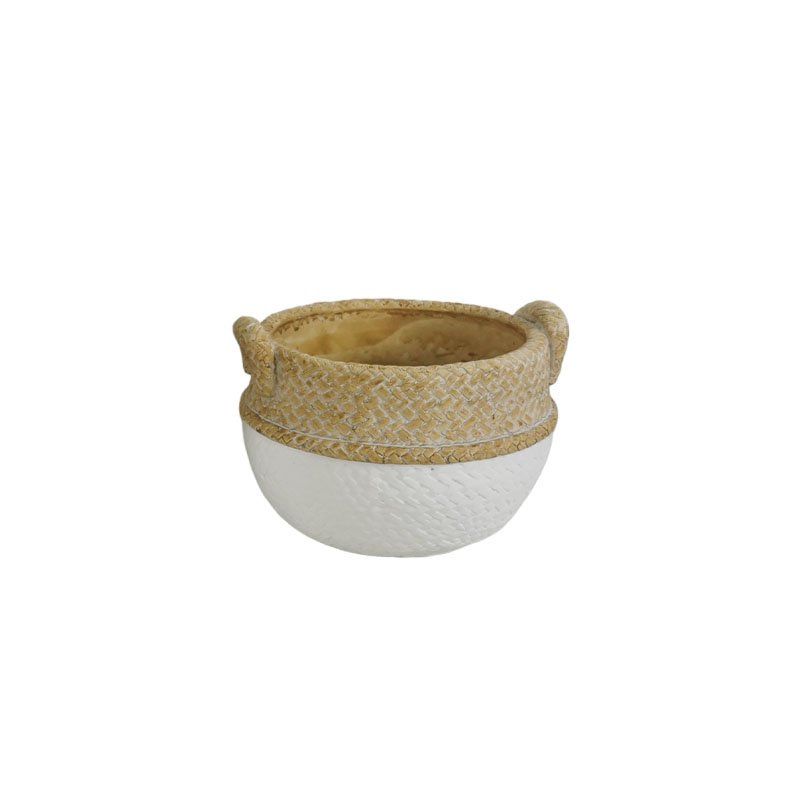 Бяло-кафява циментова саксия с дръжки - 13.5x13x10.5см 18/18kib
