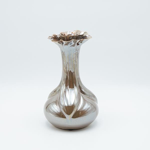 Ваза за цветя керамична, тъмно сребърно, 15x15x24.5см