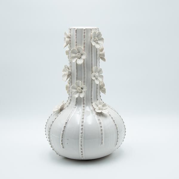Ваза с цветя, керамична, бяла, 21,5x21,5x34см