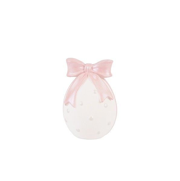 Великденско яйце от полирезин с розова пандела, бяло 5x5x8см