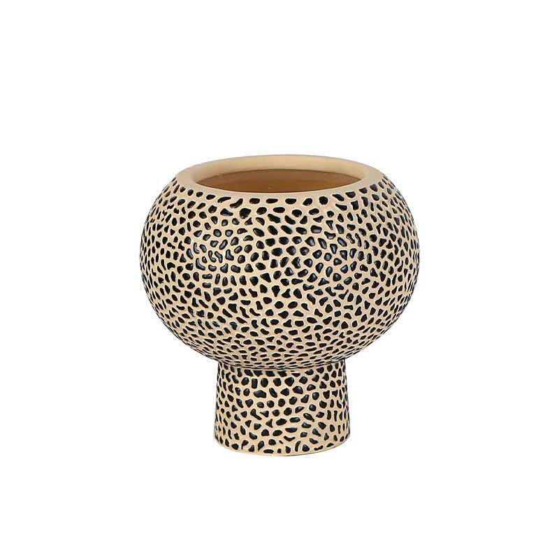 Голяма бежово-черна сферична саксия на точки с основа Φ20x20см - 1/6kib