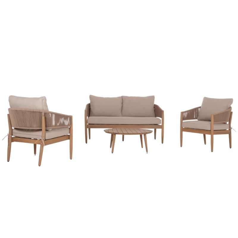 Градински комплект от 4 Частиkanu Hm6416 акациево дърво-метална рамка-въже - бежов