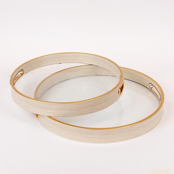 ДВА ПОДНОСА СЪС СТЪКЛО, БЕЖОВО - ЗЛАТИСТО 36X36X4СМ / 32X32X4СМ