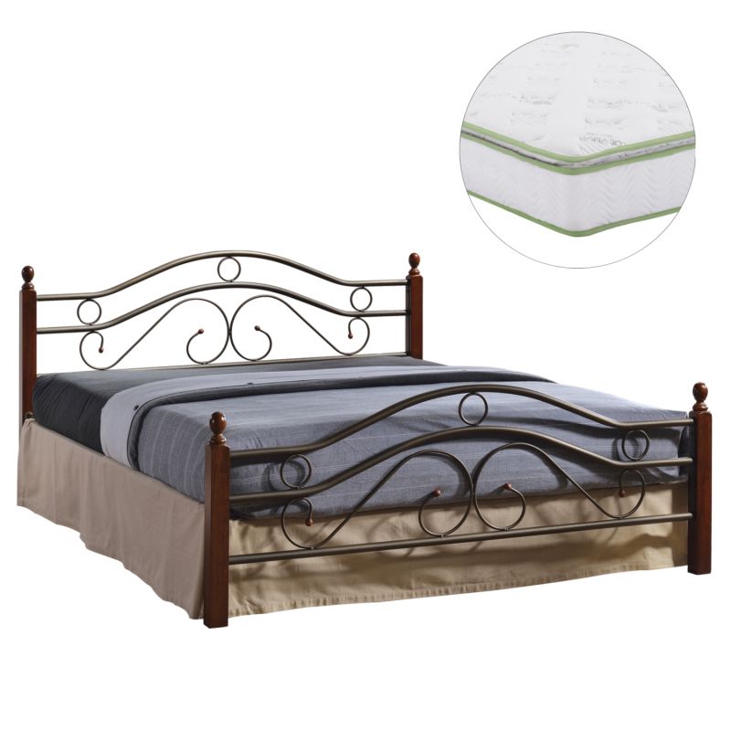 Двойно легло с матрак Celina Hm21328 метал и дърво в мръсен дъб - матрак 150x200см