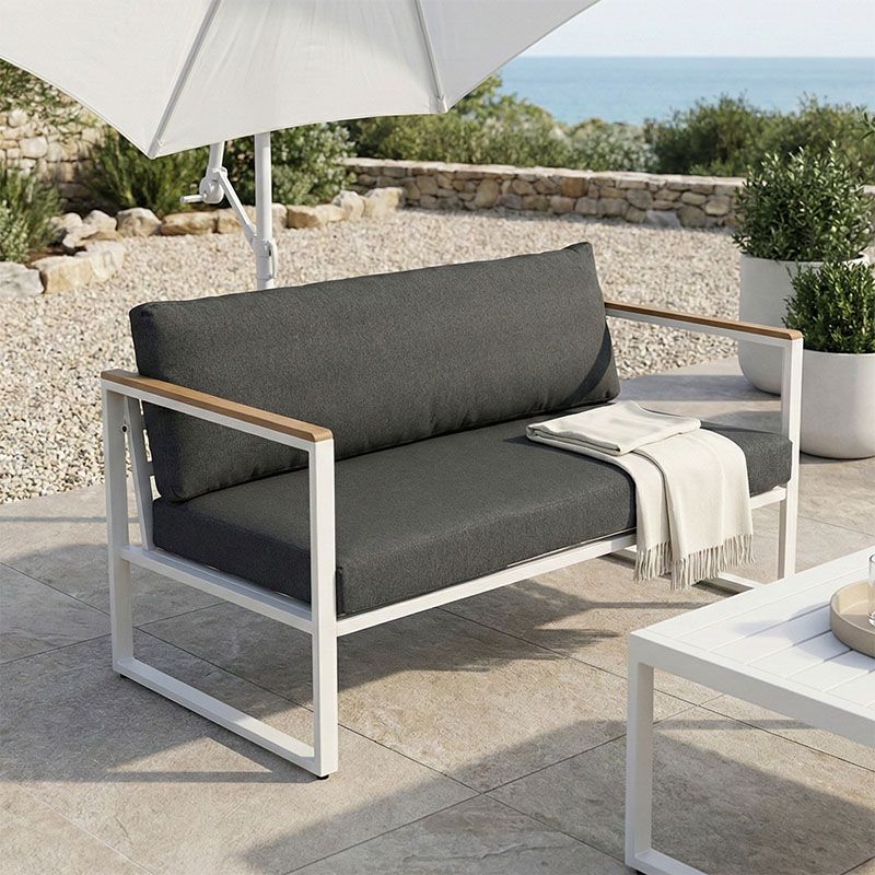 ДВУМЕСТЕН ДИВАН AURELIO МЕТАЛИК В БЯЛО - ВЪЗГЛАВНИЦИ В АНТРАЦИТЕН НЮАНС 130X74X63СМ