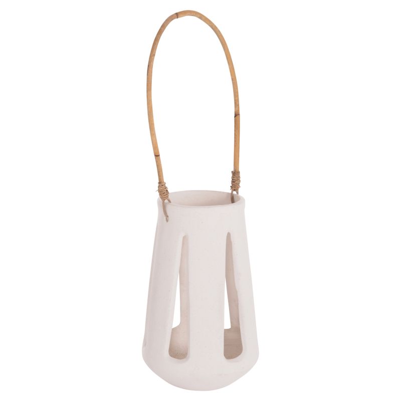 Декоративен настолен фенер Erantyl Hm4696.02l бял фиброцимент и ратанова дръжка Φ17x27hcm