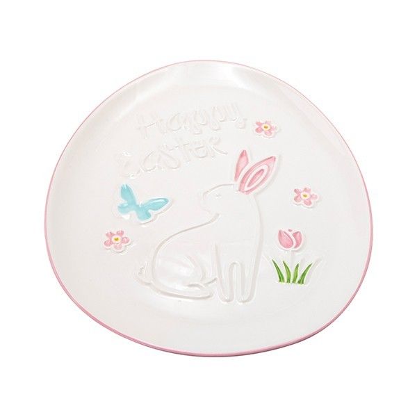 ДЕКОРАТИВНА ВЕЛИКДЕНСКА ЧИНИЯ СЪС ЗАЕК, КЕРАМИЧНА, БЯЛА - РОЗОВА, 20.6X26X1.7СМ