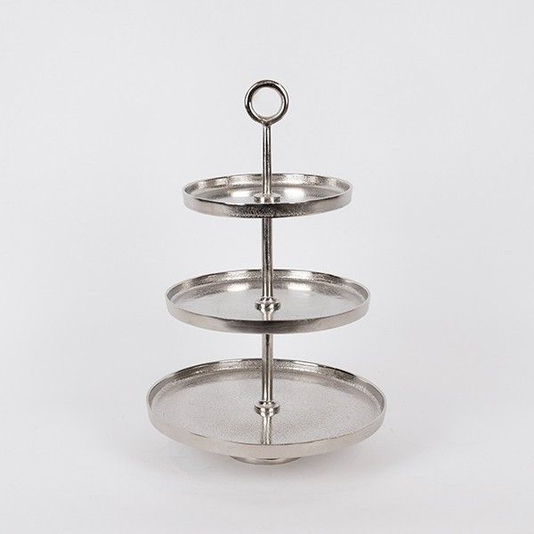 ДЕКОРАТИВНА ПОСТАВКА ЗА ТОРТА 3 ЕТАЖА МЕТАЛНА СРЕБЪРНО 10X48СМ