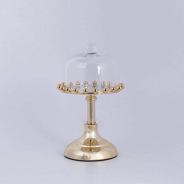 ДЕКОРАТИВНА ПОСТАВКА ЗА ТОРТА С МЕТАЛЕН КАПАК С ОГЛЕДАЛО, ЗЛАТНА 22X15СМ