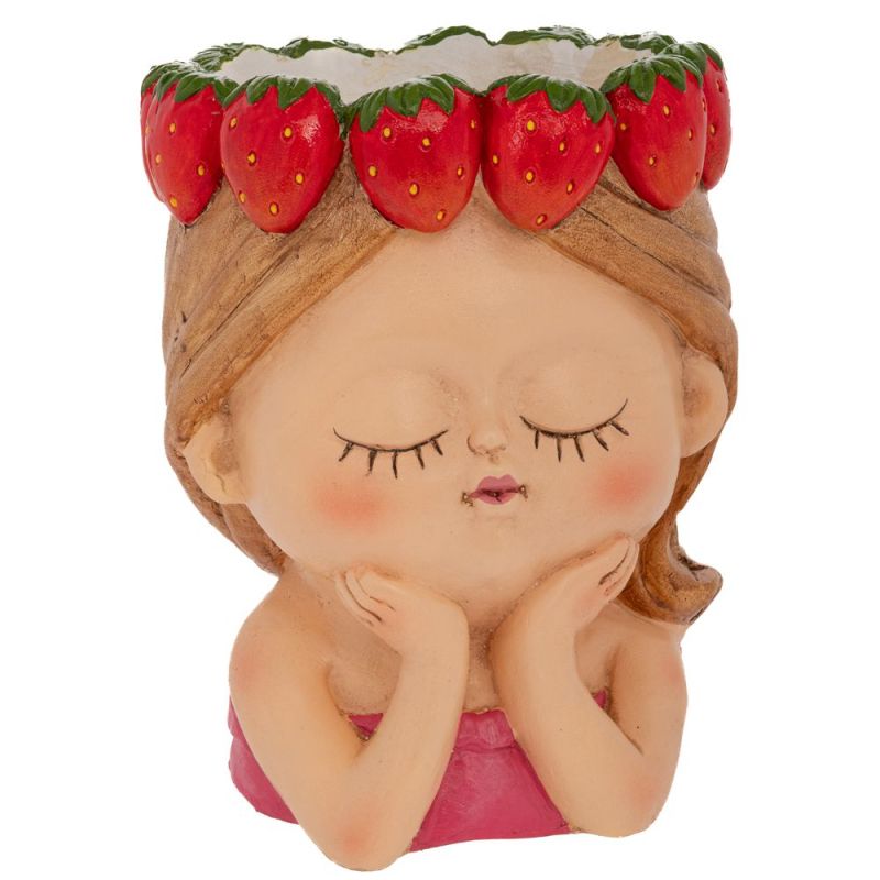 ДЕКОРАТИВНА САКСИЯ ОТ ПОЛИРЕЗИН ВЪВ ФОРМАТА НА МОМИЧЕ С ЯГОДИ НА ГЛАВАТА 20,5X20,5X26,5 СМ