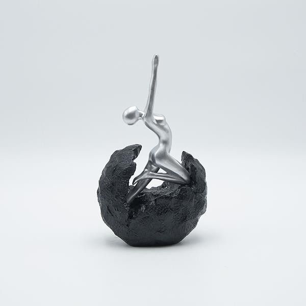 Декоративна скулптурна фигура от полирезин черно-сребърна 12.5x7x22см